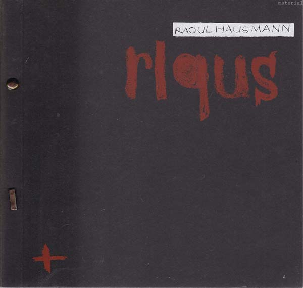 Hausmann. Raoul: rlqus +. (material 2). Auflage 500 Exemplare. edition copie im Verlag Zweitschrift. 1982. 20 x 21 cm. 40 unpaginierte S. Schwarzer OPappband, betitelt, mit Klammerheftung. Kanten minimal berieben. Sonst sehr gutes Exemplar. Erste Ausgabe der von Raoul Hausmann gestalteten Nr. 2 von Daniel Spoerris „Material“, ursprünglich nur aus schwarzen und weissen Seiten bestehend.