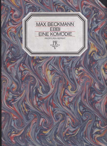 Beckmann, Max: Ebbi. Eine Koödie. Reprint. Berlin/ Wien. Propyläen. 1973. 34 x 24,5 cm. 46 S., 2 Blatt. OHLeinen mit marmorierten Deckeln in OPappschuber. Deckel etwas lichtrandig und berieben. Sonst sehr gutes Exemplar. Nachdruck der Originalausgabe von 1924 mit 6 ganzseitigen Lichtdrucken von Max Beckmann.