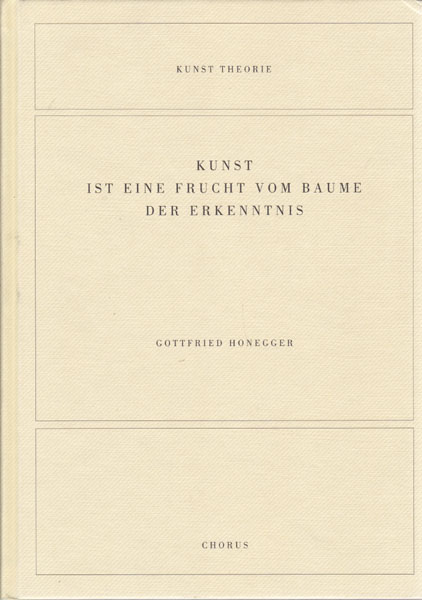 Honegger, Gottfried: Kunst ist eine Frucht vom Baume der Erkenntnis. Erste Auflage. München. Chorus Verlag. 2000. 24,5 x 17,5 cm. 104 S. OPappband. Einband an den Stoßkanten etwas gestaucht, sonst gutes bis sehr gutes Exemplar. Durchgehend mit Abbildungen versehen.