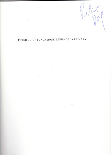 Doig, Peter: Peter Doig. With texts by Milovan Farronato and Richard Shiff. Erste Auflage. Venedig. Palazzetto Tito/ Fondazione Bevilacqua La Masa. Michael Werner Gallery. 2016. 32,5 x 24,5 cm. 50 S., 1 Blatt. OKarton mit illustriertem OUmschlag und Pergaminumschlag in illustriertem OPappschuber. Pergaminumschlag mit kleinen Randbereibungen, Vorderdeckel mit sehr kleiner Quetschfalte. Sonst sehr gutes Exemplar. Schön gestalteter Katalog zur Ausstellung Venedig 4. Masi bis 4. Oktober 2015. durchgehend mit farbigen Abbildungen versehen, darunter einige gefaltete! Text in englischer Sprache. Mit eigenhändiger Signatur von Peter Doig auf dem Vortitel!