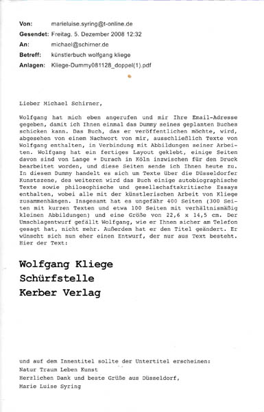Kliege, Wolfgang: Schürfstelle. Erste Auflage. Bielefeld/ Leipzig. Kerber Verlag. 2009. 22,5 x 14,5 cm. 403 S. OPappband mit OUmschlag. Umschlagkanten etwas nachgedunkelt und berieben. Sonst gutes bis sehr gutes Exemplar. Durchgehend mit meist farbien Abbildungen sowie eigenhändiger Signatur des Künstlers auf dem Vortitel versehen!