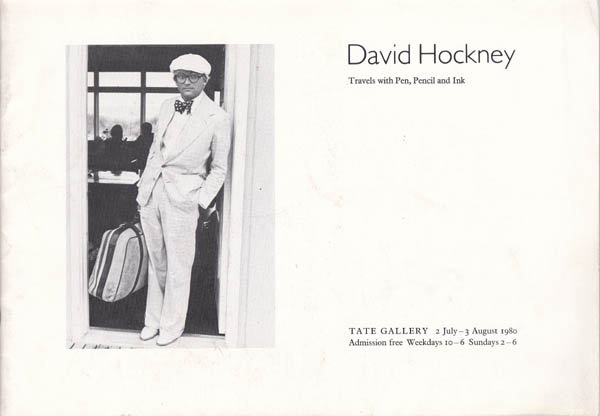 Hockney, David: Travels with Pen, Pencil and Ink. Erste Auflage. London. Tate Gallery. 1980. 21 x 29,5 cm. 16 unpaginierte S. Illustrierte OBroschur. Einbandkanten nachgedunkelt und etwas berieben, insgesamt etwas angestaubt. Sonst noch gutes Exemplar. Katalog zur Ausstellung London 2. Juli bis 3. August 1980 durchgehend mit ganzseitugen, schwarz-weissen Werkabbildungen versehen. Text in englischer Sprache.