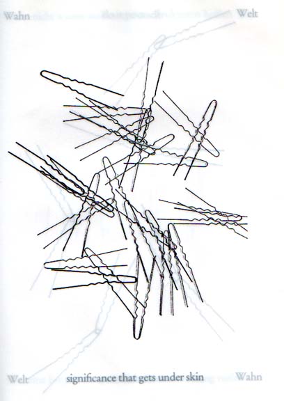 Schäuffelen, Konrad Balder: Nadel Buch. the hairpins from under my bed. Auflage 100 Exemplare. Berlin. Rainer Verlag. 1985. 30 x 22 cm. 174 unpaginierte S. OLeinen mit OUmschlag. Sehr gutes Exemplar. Nummer 62 / 100 im Kollophon nummerierten und handschriftlich signierten Exemplaren des auf transparentem Pergamin gedruckten Künstlerbuches, durchgehend mit Wiedergaben von Haarnadeln versehen.