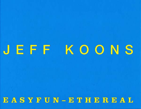 Koons, Jeff: Easyfun-Ethereal. [Deutsche Guggenheim Berlin, 27. Oktober 2000-14. Januar 2001]. 1. Auflage. Berlin / Ostfildern-Ruit. Deutsche Guggenheim / Hatje Cantz Verlag. 2001. 22 x 28 cm. 80 S. OPappband. Sehr gutes Exemplar. Mit einem Interview von David Sylvester mit Jeff Koons sowie einem Text von Robert Rosenblum. Durchgehend mit farbigen Abbildungen versehen.