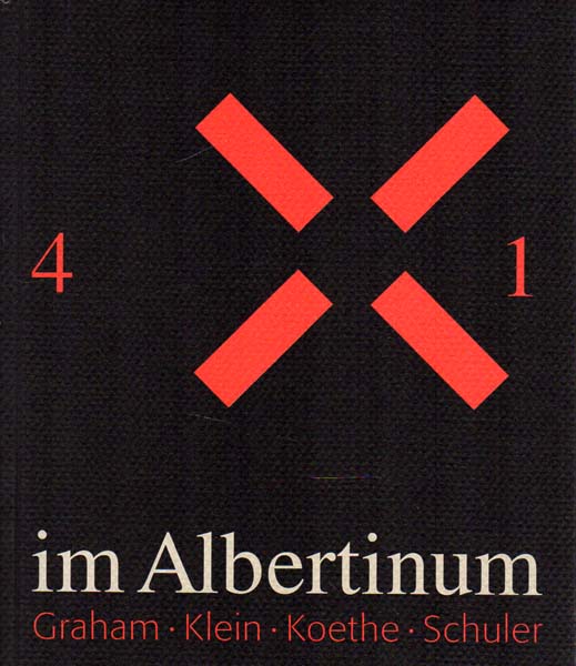 Graham, Dan [und weitere]: 4 x 1 im Albertinum. Graham, Klein, Koethe, Schuler. Erste Auflage. Dresden. Staatliche Kunstsammlungen. 1998. 19 x 16,5 cm. 94 S. OKarton mit OKlappenumschlag. Kapitale mit minimalen Bereibungen, sonst gutes bis sehr gutes Exemplar. Erschienen anlässlich der Ausstellung 14. Dezember 1997 – 22. März 1998 der Gemäldegalerie Neue Meister, Staatliche Kunstsammlungen, Dresden. Durchgehend mit meist farbigen Abbildungen versehen. Mit Dan Graham, Astrid Klein, Wolfgang Koethe und Alf Schuler.Inliegend Errata.