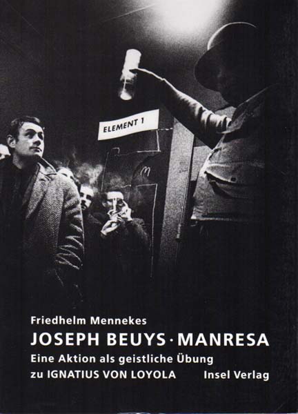 Beuys, Joseph – Friedhelm Mennekes: Joseph Beuys. Manresa. Eine Fluxus-Demonstration als geistliche Übung zu Ignatius von Loyola. Mit Aktionsfotos von Walter Vogel. 1. Auflage. Fft. Lpz. Insel Verlag. 1992. 25 x 18 cm. 143 S. OKarton mit OKLappenumschlag. Sehr gutes Exemplar. Durchgehend mit s/w Abbildungen versehen.