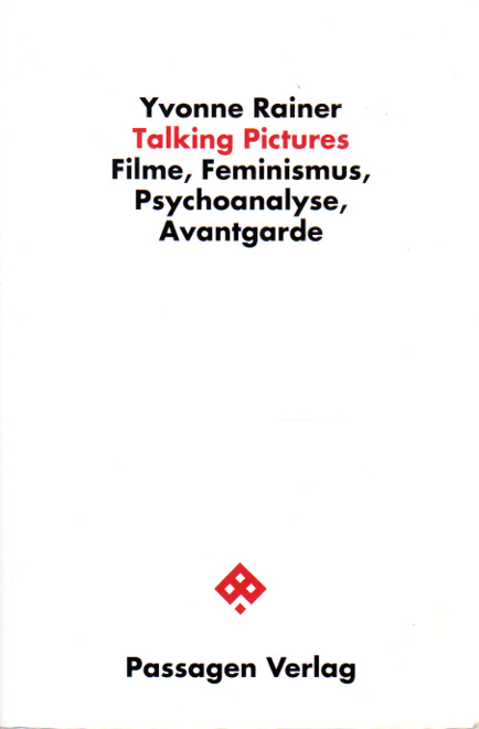 Rainer, Yvonne: Talking pictures. Filme, Feminismus, Psychoanalyse, Avantgarde. Erste deutsche Ausgabe. Wien. Passagen Verlag. 1994. 24 x 16 cm. 345 S. Illustrierter OKarton. Einband berieben und etwas unfrisch, sonst gutes Exemplar. Passagen Kunst. Teilweise mit schwarz-weiß Abbildungen versehen.