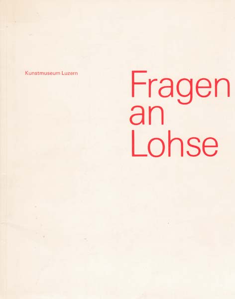 Lohse, Richard Paul – Martin Kunz [Herausgeber]: Fragen an Lohse. Erste Auflage. Luzern Kunstmuseum Luzern. 1985. 23,5 x 19 cm. 77 S., 11 Blatt Inserententeil. OKarton. Einband etwas lichtrandig, einige sehr wenige Bleistiftmarkierungen. Sonst gutes bis sehr gutes Exemplar. Mit Fragen u.a. von Harald Szeemannn und Fritz Billeter sowie ausführlichem Texttteil von Richard Paul Lohse.
