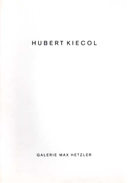 Kiecol, Hubert: Galerie Max Hetzler. 1. Auflage. Köln. Galerie Max Hetzler. 1990. 30 x 21 cm. 16 unpaginierte S. OKarton. Name auf der ersten Seite, sonst sehr gutes Exemplar. Mit Abbildungen im Text.