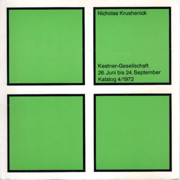 Krushenick, Nicholas: 26. Juni bis 24. September 1972. Katalog 4 / 1972. Kestner Gesellschaft Hannover. Erste Auflage. Hannover. Kestner Gesellschaft Hannover. 1972. 21 x 20 cm. 112S. OKarton. Sehr gutes Exemplar. Mit überwiegend farbigen, ganzseitigen Abbildungen.