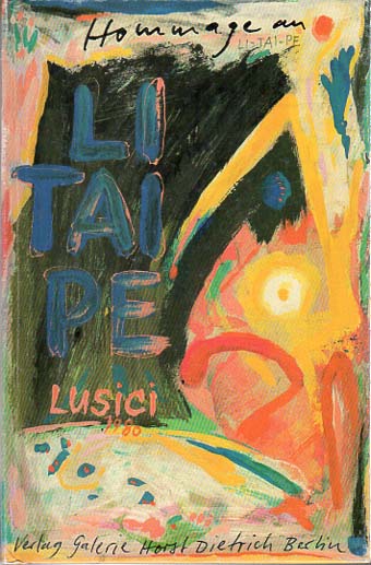 Lusici: Hommage an Li-Tai-Pe. Lusici Malerbuch MB/23. Bln. Galerie Horst Dietrich. 1988. 18 x 12 cm. 48 S. Farbig illustrierter OPappband. Sehr gutes Exemplar. Übermalungen eines Li-Tai-Pe Textes. Mit handschriftlicher Signatur des Künstlers auf dem Titelblatt, datiert 88.