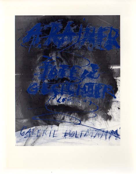 Rainer, Arnulf: Totengesichter. Erste Auflage. Köln. Galerie Holtmann. 1981. 28 x 21,9 cm. 48 S. Illustrierter, flexibler OKarton. Umschlag leicht lichtspurig, innen papierbedingt etwas nachgedunkelt, sonst gutes Exemplar. Durchgehend mit schwarz-weißen und farbigen Abbildungen versehen. Mit Texten von Jens Christian Jensen und Arnulf Rainer (″Rein – Pein- Schein- Sein“) in deutscher Sprache. Katalog zur gleichnamigen Ausstellung in Köln, Galerie Holtmann, vom 10.7. bis zum 29.8.1981; in Hannover, Galerie Holtmann, von September bis November 1981 sowie in Kiel, Kunsthalle, im März/April 1982.