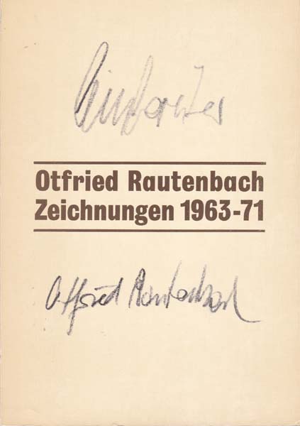 Rautenbach, Otfried: Zeichnungen 1963 – 71. Zeichnungen aus den Jahren 1963 – 67 mit dem Pseudonym Friedrich Leinbereiter und aus den Jahren 1967 – 71 mit dem Namen Otfried Rautenbach. Erste Auflage. Münster. Heidelberg. Westfälischer Kunstverein. Heidelberger Kunstverein. 1983. 24 x 17 cm. 213 S., 2 Blatt. OKarton. Einbandkanten minimal lichtrandig. Sonst gutes bis sehr gutes Exemplar. Katalog zu den Ausstellungen Münster 11. Februar bis 10. April 1983 und Heidelberg 5. Juni bis 26. Juni 1983. Durchgehend mit Abbildungen versehen.