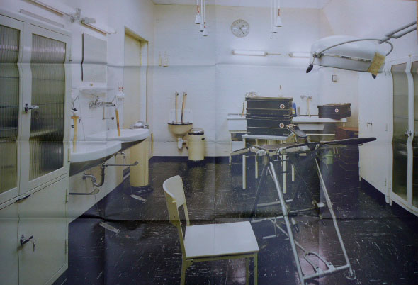 Magdanz, Andreas: Dienststelle Marienthal. Geheim amtlich geheimgehalten. [Faltplakat] (Aachen). (Andreas Magdanz). (2000). 32,5 x 39 cm. 1 Faltbogen. OKarton-Mappe. Verschlusskleber geöffnet, sonst sehr gutes Exemplar. Faltplakat anläßlich der Ausstellung im Rheinischen Landesmuseum Bonn. Zeigt auf der einen Seite ganzseitig eine Innenansicht, verso sind alle ausgestellten Fotoarbeiten zu sehen. Das abgebildete Flugzeug ist dem Umschlag des Buches entlehnt [es handelt sich nicht um die Buchpublikation!]. In Karton-Mappe mit (geöffnetem) Geheimhaltungssiegel-Papier. Die gesamten Rückseite des Faltplakates hat die Abbildung – OP Sanitätsbauwerk, Ost/Ost; Plan- Nr. 29 – [ unserer 2. Abbildung]!