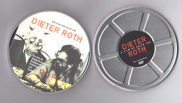 Jud, Edith: Dieter Roth. Ein Film von / A film by Edith Jud. Ein Film für Rothenthusiasten, Rothkenner, Rothskeptiker und Rothneulinge. 1. Auflage. Zürich. Reck Fimproduktion Zürich. 2004. DVD. Silberne Blechdose in Form einer Filmrolle. Tadelloses Exemplar. DVD mit einem Film über Dieter Roth, sein Leben und Werk. Mit Aussagen von Zeitzeugen wie Björn Roth und Sigridur Björnsdottir, Arnulf Rainer etc. Mit einem kleinen Booklett. Texte in deutscher und englischer Sprache mit Untertiteln in Französich und Spanisch.