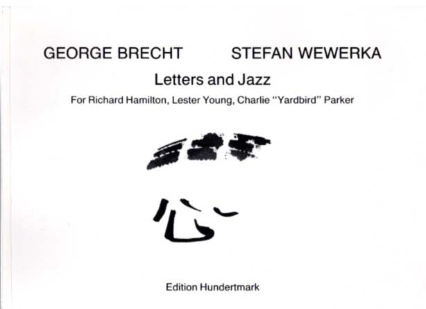Brecht, George [und] Stefan Wewerka: Letters and Jazz. For Richard Hamilton, Lester Young, Charlie „Yardbird“ Parker. Auflage: 1000 Exemplare. Köln. Edition Hundertmark. 1983. 21 x 15 cm. 16 unpaginierte S. OKarton. Eine Kante minimal gestaucht, sonst sehr gutes Exemplar. Heft 13 der Edition Hundertmark. Vgl. Michael Glasmeier / Die Bücher der Künstler, Nummer 10, S. 25.