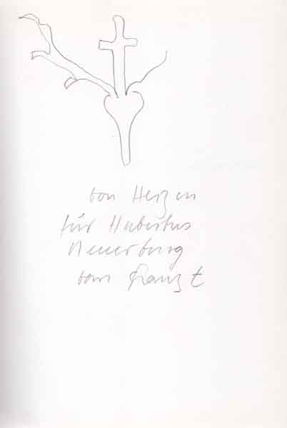 Eggenschwiler, Franz: Werke 1950 bis 1985. Objekte, Schmuck, Zeichnungen, Malerei, Druckgraphik. Kunstverein für die Rheinlande und Westfalen, 13. September bis 27. Oktober 1985. Erste Auflage. Düsseldorf. Kunstverein für die Rheinlande und Westfalen. 1985. 30 x 21 cm. 240 S. OPappband mit OUmschlag. Sehr gutes Exemplar. Umfangreiche Werkübersicht. Mit handschriftlicher Widmung des Künstlers an einen Professorenkollegen sowie einer kleinen Bleiitiftzeichnung auf dem Vorsatz (Hirschschädel mit einseitigem Geweih und aus dem Schädel wachsendem Kreuz).
