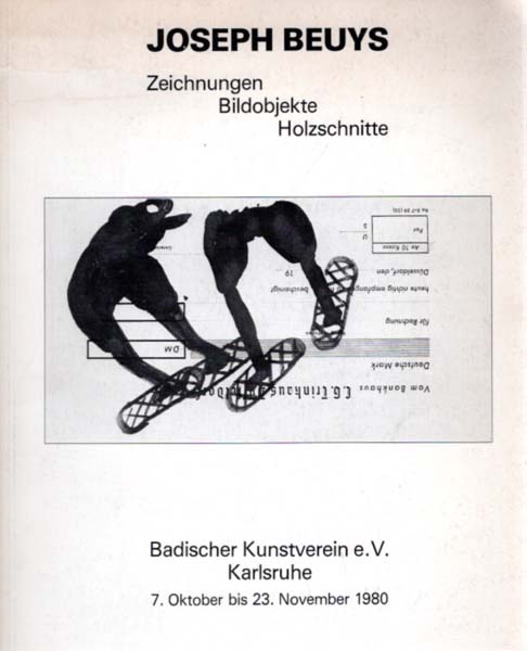 Beuys, Joseph: Zeichnungen – Bildobjekte – Holzschnitte. Badischer Kunstverein e.V. Karlsruhe, 7. Oktober bis 23. November 1980. Erste Auflage. Basel. Kunstmuseum Basel. 1980. 26 x 21 cm. [34] unpaginierte S. Illustrierter OKarton. Einband angestaubt, lichtspurig und etwas nachgedunkelt. Sonst noch gutes Exemplar. Enthält 64 abgebildete Arbeiten sowie einen kurzen Text von Dieter Koepplin.