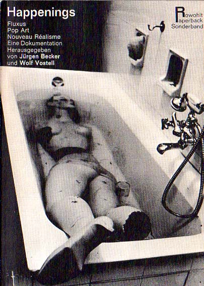 Vostell, Wolf und Jürgen Becker: Happenings. Fluxus. Pop art. Nouveau Realisme. Eine Dokumentation. Herausgegeben von Jürgen Becker und Wolf Vostell. Erste Auflage. Reinbek. Rowohl Verlag. 1965. 21 x 15 cm. 470 S., 1 Blatt. OKarton. Schnitt etwas gebräunt, Rücken lesespurig, sonst gutes Exemplar. Frühe und reich bebilderte Dokumentation der drei Hauptkunstströmungen der 60er Jahre. Auf dem Umschlag ein Foto des Happenings „Die Ausstellung der Musik“ von Nam June Paik.