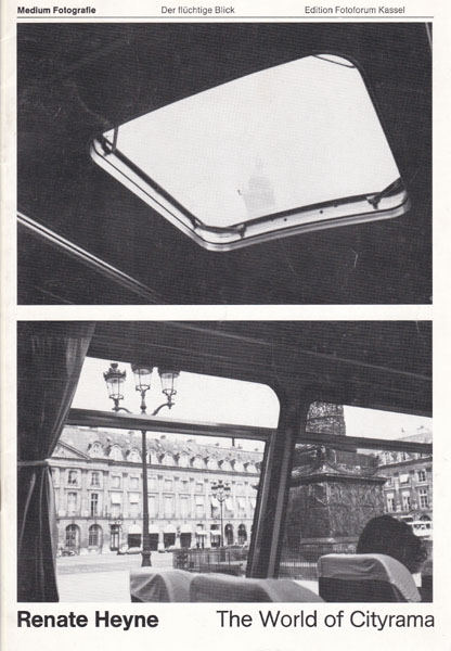 Heyne, Renate: The World of Cityrama. Auflage: 1500 Exemplare. Kassel. Fotoforum. 1980. 24 x 16 cm. 24 unpaginierte S. Illustrierter OKarton. Einband berieben und etwas unfrisch, sonst gutes Exemplar. Medium Fotografie. Edition Fotoforum Kassel. Erschien anläßlich der Ausstellung „The World of Cityrama oder Der flüchtige Blick“ im Fotoforum Kassel. Mit einer Einführung von Floris M. Neusüss. Durchgehend mit schwarz-weiß Abbildungen versehen.