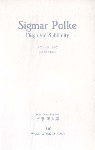 Polke, Sigmar: Disguised Sublimity. By Ichihara Kentaro. First edition. Tokyo. Wako Works of Art. 1994. 21 x 13 cm. 118 S., 1 Blatt, VII S. OKarton mit transparentem Pergaminumschlag. Der empfindliche Umschlag am oberen Rand gering berieben, vorne am linken Rand mit einem vier Centimeter langem Einriss. Sonst sehr gutes Exemplar. Enthält einen Text von Ichihara Kentaro in Englisch und Japanisch sowie einige schwarz-weisse Textabbildungen. Recht selten. [Vgl. Das Wunder von Siegen S. 116].