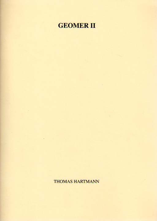 Hartmann, Thomas: Geomer II. 10.10.-18.12.1999 Galerie Beim Steinernen Kreuz, Bremen. Auflage: 500 Exemplare. Bremen. Galerie Beim Steinernen Kreuz. 1999. 28 x 20 cm. 16 unpaginierte S. OKarton. Gutes Exemplar. Enthält einen Text von Carsten Ahrens sowie 8 wiedergegebene Arbeiten Hartmanns.