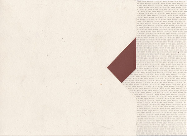 Michler, Johannes: Kein Wort. Arbeiten mit Sand. Stadtgalerie im Sophienhof Kiel, 7. Mai bis 6. Juni 1993. Auflage 500 Exemplare. Kiel. Stadtgalerie im Sophienhof. 1993. 20,5 x 20,5 cm. 20 unpaginierte S., 24 lose Blatt. OKarton-Schuber in OKarton-Schuber. Schuberkanten etwas nachgedunkelt und mit kleinen Bereiungen. Sonst gutes bis segr gutes Exemplar. Begleitheft mit einem Text von Knut Nievers sowie 24 Abbildungen auf losen Kartons in doppeltem Schuber.