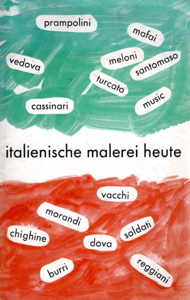italienische malerei heute. Städtisches Museum Leverkusen, Schloss Morsbroich, 23. Juli bis 9. September 1956. 1. Auflage. Leverkusen. Städtisches Museum Leverkisen Schloss Morsbroich. 1956. 30 x 19 cm. 24 unpaginierte S. OKarton. Rücken an der oberen Kante leicht gestaucht. Kleiner Besitzstempel auf dem ersten Blatt. Gutes Exemplar. Mit Texten von Curt Schweicher und Lionello Venturi und abgebildeten Arbeiten u.a. von Afro, Birolli, Burri, Capogrossi, Corpora, Dorazio, Dova, Gentilini, Mafai, Meloni, Morandi, Morlotti, Pirandello, Santomaso, Sironi, Vedova etc. Beiliegend die Einladungskarte zur Ausstellung. Aus der Bibliothek des Kunsthistorikers und ehemaligen Direktors der Düsseldorfer Kunstakademie Düsseldorf, Eduard Trier, mit kleinem Besitzstempel.