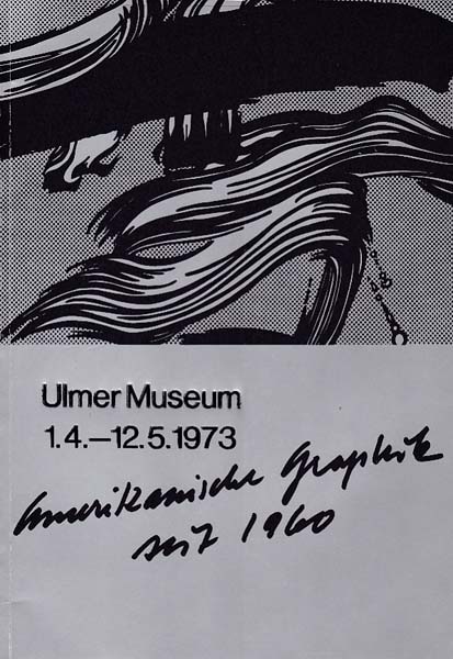 Koepplin, Dieter – Hans Hartmann [Herausgeber]: Amerikanische Graphik seit 1960. Erste Auflage. Ulm. Chur. Solothurn. Ulmer Museum. Kunsthaus Chur Kunstverein Solothurn. 1972. 30 x 21 cm. 76 unpaginierte S. Illustrierter OKarton. Einband mit geringen Randbereibungen, Schnitt papierbedingt etwas lichtrandig. Sonst sehr gutes Exemplar. Katalog zu den Ausstellungen Ulm 14. April bis 12. Mai 1973, Chur 6. Mai. bis 18. Juni 1972, Solothurn 26. August bis 24. September 1972 und andere Stationen. Ausgestellt wurden graphische Werke von Albers bis Wesselmann. Durchgehend mit Abbildungen versehen