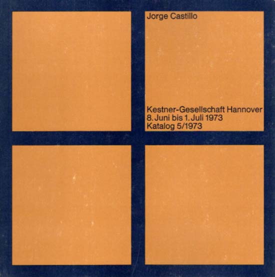 Castillo, Jorge: Radierungen. 8. Juni bis 1. Juli 1973. Katalog 5/1973. Kestner-Gesellschaft Hannover. Erste Auflage. Hannover. Kestner Gesellschaft Hannover. 1973. 21 x 21 cm. 72 S. 6 Blatt. OKarton. Sehr gutes Exemplar. Verzeichnet 95 meist abgebildete Arbeiten. Mit einem Text von Werner Haftmann.