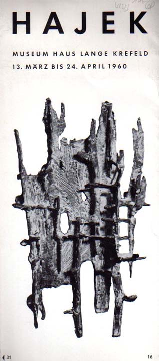 Hajek, Otto Herbert: Hajek. Museum Haus Lange, Krefeld, 13. März bis 24. April 1960. Erste Auflage. Krefeld. Museum Haus Lange. 1960. 24 x 31 cm. 8 S. OKarton / Leporellokatalog. Gutes Exemplar. Mit einem Text von Paul Wember und SW-Abbildungen auf einem Leporellokatalog.