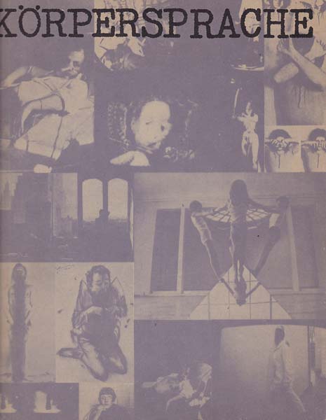 Bussmann, Georg – Thomas Kempas [Herausgeber]: Körpersprache. Erste Auflage. Berlin. Frankfurt. Haus am Waldsee. Frankfurter Kunstverein. 1975. 28,5 x 23 cm. 78 unpaginierte S. Illustrierter OKarton. Einbandrücken mit kleinen Bereibungen. Sonst gutes bis sehr gutes Exemplar. Katalog zu den Ausstellungen Berlin 12. 12. 1975 bis 25. 1. 1076 und Frankfurt 13.2. bis 28. 3. 1976. Durchgehend mit Abbildungen der Werke von Vito Acconci, Gilbert & George,Rebecca Horn, Katharina Sieverding u.a. versehen.