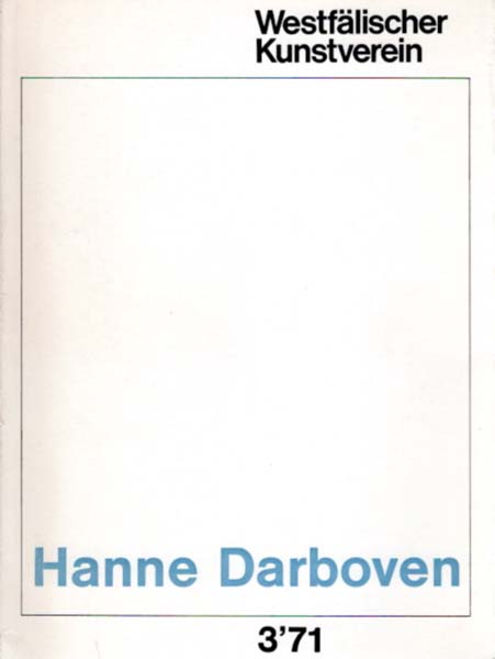 Darboven, Hanne: Nr. 3 / 1971. 16. Oktober bis 14. November 1971. Westfälischer Kunstverein Münster. Münster. Westfälischer Kunstverein. 1971. 23 x 17 cm. 57 S. 2 Blatt. OKarton mit OKLappenumschlag. Vom Rücken her etwas gebräunt, sonst gutes Exemplar. Erste Ausgabe. Zweite öffentliche Ausstellung der Künstlerin nach dem Städtischen Museum Mönchengladbach 1969.