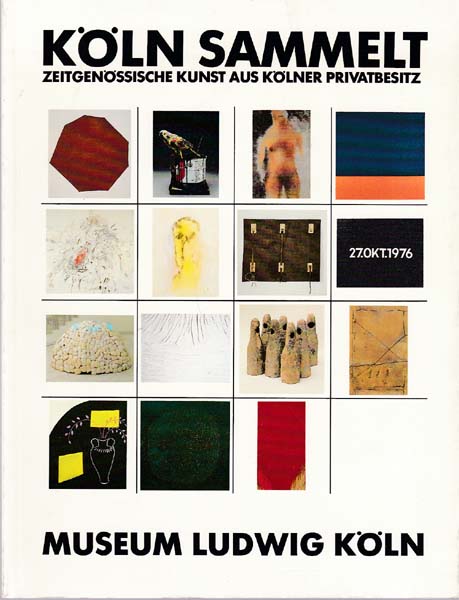 Gohr, Siegfried (Herausgeber): Köln sammelt. Zeitgenössische Kunst aus Kölner Privatbesitz. Museum Ludwig, 5. November bis 11. Dezember 1988. 1. Auflage. Köln. Museum Ludwig. 1988. 26,5 x 20,5 cm. 233 S., 2 Blatt. Illustrierter OKarton mit OKLappenumschlag. Einbandkanten etwas nachgedunkelt und berieben. Sonst gutes Exemplar. Enthält Arbeiten aus Kölner Privatsammlungen, u.a. von Beuys, Boodthaers, Fontana, Kawara, Kounellis, Manzona, Merz, Palermo, Polke, Rainer, Tuttle, Twombly etc.