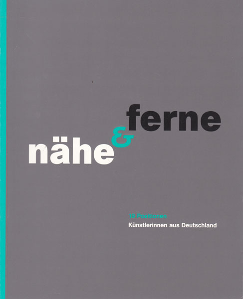 nähe & ferne. 19 Positionen Künstlerinnen aus Deutschland. Stadtgalerie Sofia, 9. Oktober bis 10. November 1996. 1. Auflage. Arnsberg. Kunstverein. 1996. 26 x 21 cm. 103 S. OKarton mit OKLappenumschlag. Einbandkanten mit minimalen Bereibungen. Sonst sehr gutes Exemplar. Enthält Beiträge zu Birgit Antoni, Gudrun Barenbrock, Mercedes Barros, Susanne Fink, Maria Fisahn, Pia Fries, Efrat Gal-Ed, Trixi Groiss, Maria Hammel, Margareta Hesse, Karin Hochstatter, Birgit Jensen, Christine Laun, Frances Scholz, Nicola Schrudde, Gabriele Seifert, Ulricke Siecaup, Birgitta Weimer und Yana Yo. Mit beiliegender Einladung.