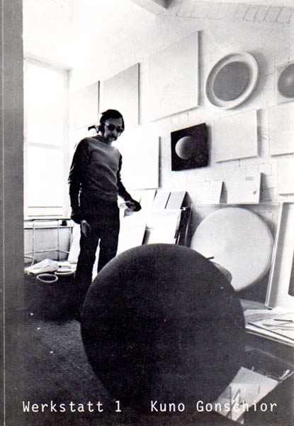 Gonschior, Kuno: Werkstatt 1. Städtisches Museum Leverkusen, Schloß Morsbroich, 12. März bis 12. April 1971 [und weitere Stationen]. 1. Auflage. Leverkusen. Städtisches Museum Leverkusen. 1971. 29 x 20 cm. 38 unpaginierte S. OKarton. Gutes bis sehr gutes Exemplar. Schöner Katalog mit einem doppelseitigen Siebdruck in Neon-Orange mit einer Komposition aus Punkten in vier verschiedenen Grüntönen. Text Rolf Wedewer, durchgehend mit Abbildungen versehen.