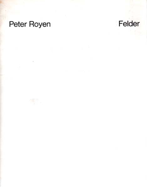 Royen, Peter: Felder. Erste Auflage. Altena. Kulturring. 1979 4°. 16 S. OKarton. Minimal angestaubt, sehr gutes Exemplar. Erschien anläßlich der Ausstellung: Stadtgalerie Altena 6. bis 28. Oktober 1979. Mit einem Text von John Mateson. Durchgehend mit Abbildungen versehen. Beiliegend ein Folder von Peter Royen mit einem Text von Jürgen Harten sowie Lebensdaten und Abbildungen, 2 Einladungskaten, 1 Einladungskarte, von Hand adressiert und mit Grußworten versehen von Peter Royen, 1 handschriftliche Grußkarte, unterzeichnet Peter, 1 Postkarte, überklebt mit einem Porträtfoto des Künstlers, verso mit siebenzeiligem Text, ebenfalls unterzeichn et „Peter“.
