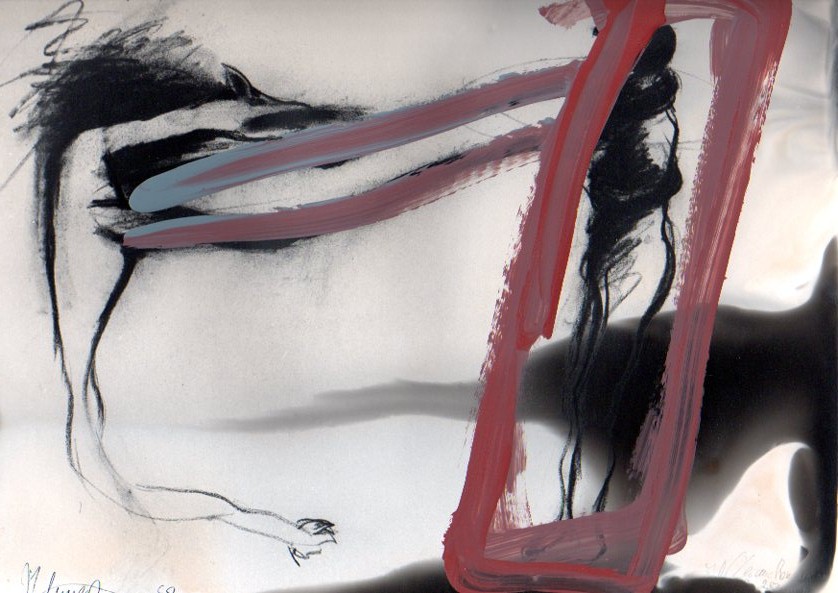 Enneper, Mic: Vier Fotoübermalungen. 4 Blatt. Verso marginale Fixirrückstände, sonst sehr gut erhalten. Acryl auf Fotopapier. 4 Fotoübermalungen, 30,2 x 24,0 cm, signiert, datiert 1983.