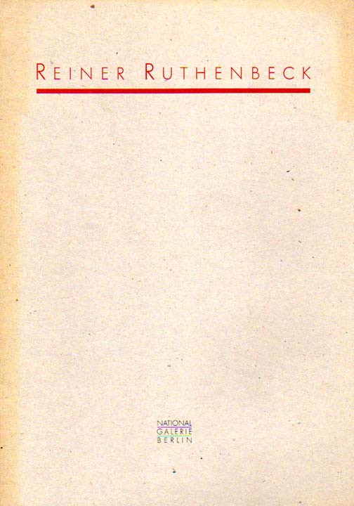 Ruthenbeck, Reiner. Reiner Ruthenbeck. Erste Auflage. Berlin. Staatliche Museen Preußischer Kulturbesitz. 1990. 30 x 21 cm. 23 S. OKarton mit OKlappenumschlag. Einband etwas gedunkelt, sonst gutes Exemplar. Mit einem Textbeitrag von Angela Schneider. Enthält 10 Abbildungen. davon 8 in Farbe. Erschien anläßlich der Ausstellung: Staatliche Museen zu Berlin, Nationalgalerie, Altes Museum, Berlin, 20.9. – 4.11.1990.