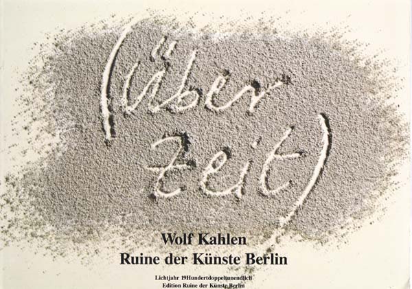 Kahlen, Wolf: (über Zeit) Lichtjahr 19Hundertdoppeltunendlich. Auflage 1000 Exemplare. Berlin. Ruine der Künste. 1989. 21 x 29,5 cm. 176 unpaginierte S. Illusrierter OKarton mit Klappenumschlag. Einbandkanten mit kleinen Bereibungen. Sonst gutes Exemplar. Durchgehend mit ganzseitigen Abbildungen versehen.