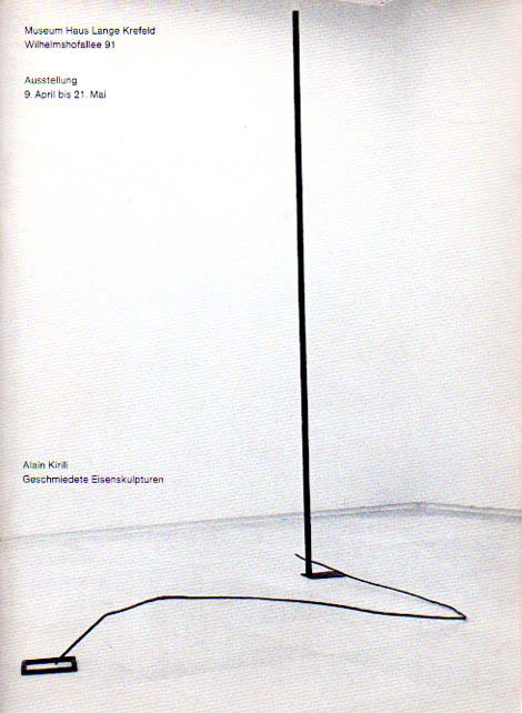 Kirili, Alain: Geschmiedete Eisenskulpturen. [Museum Haus Lange, Krefeld. Ausstellung: 9. April bis 21. Mai]. Erste Auflage. Krefeld. Kaiser Wilhelm Museum. 1978. 23 x 17 cm. 32 unpaginierte S. OKarton. Gutes Exemplar. Mit Textbeiträgen von Alain Kirili und Gerhard Storck. Enthält 21 SW-Abbildungen.