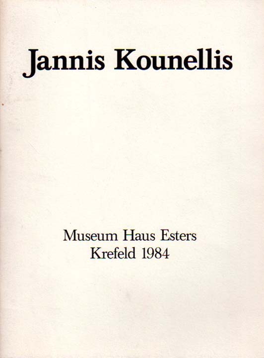 Kounellis, Jannis: Museum Haus Esters Krefeld. 26. Februar bis 29. April 1984. Erste Auflage. Krefeld. Museum Haus Esters. 1984. 28 x 21 cm. 22 S., 1 Blatt. OKarton mit OKlappenumschlag. Minimal angestaubt. Gutes bis sehr gutes Exemplar. Mit einem Textbeitrag von Marianne Stockebrand. Enthält 11 SW-Abbildungen.