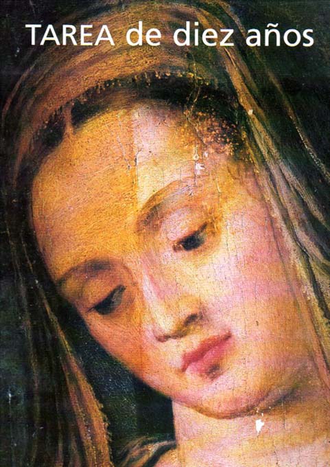 Burucua, Jose Emilio [und] Alejandro Bustillo, Mercedes de las Carreras, [und weitere]: Tarea de diez anos. Erste Auflage. Buenos Aires. Ediciones Fundacion Antorchas. 2000. 31 x 25 cm. 286 S. OLeinen mit OUmschlag. Sehr gutes Exemplar. Buch über die Restauration meist religiöser Bilder aus der spanischen Kolonialzeit in Argentinien. Texte in Spanisch und einer englischen Übersetzung am Ende des Buches. Durchgehend mit meist farbigen Abbildungen versehen.