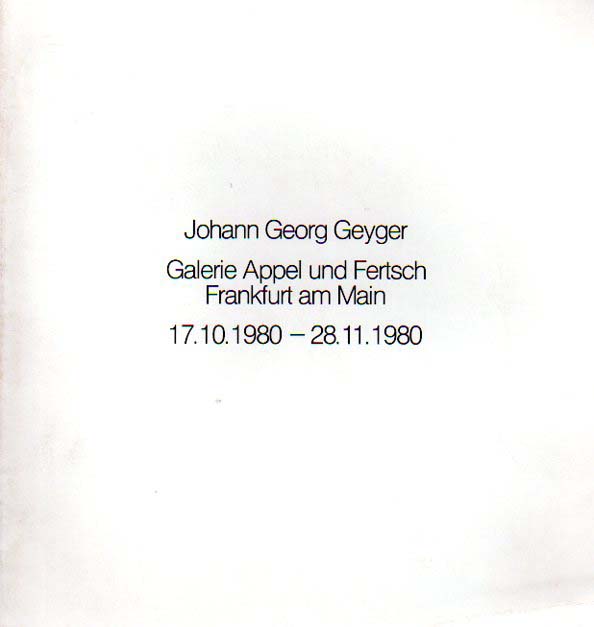 Geyger, Johann Georg: Galerie Appel und Fertsch. 17.10.1980 – 28.11.1980. Erste Auflage. Frankfurt am Main Galerie Appel und Fertsch. 1980. 23 x 22 cm. 20 S. OKarton. Untere Kante mit leichter Knickspur, Einband leicht angestaubt, ordentliches Exemplar. Mit einem Textbeitrag von Klaus Heinrich Kohrs. Enthält 8 Abbildungen, davon 4 in Farbe.