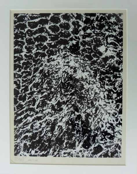 Jansen, Bernd: Ohne Titel. Luminographie. Düsseldorf. 1968. 39 x 29,5 cm. Sehr gutes Exemplar. Original-Luminographie, Vintage, Gelantinesilberabzug hochglänzend, verso signiert, gestempelt und datiert 1968. Gerahmt in heller Holzleiste, Aussenformat 54 x 43,5 cm.