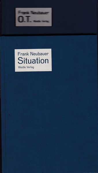 Neubauer, Frank: O.T./ Situation. Erste Auflage. 2 Bände. Bonn. Weidle Verlag. 2003. 21,5 x 15 cm. 160 unpaginierte S./ 64 S. OPappbände. Einbandkanten mit kleinen Bereibungen. Sonst sehr gut Exemplare. Erschienen anlässlich der Ausstellung „Situation,“ Museum Folkwang, Essen, 5. 9. bis 2. 11. 2003 mit Texten von Hubertus Gaßner, Eugen Blume und einem Interview von Barbara Weidle. Band 2 „O.T“ als Künstlerbuch ohne Text durchgehend mit Abbildungen versehen.