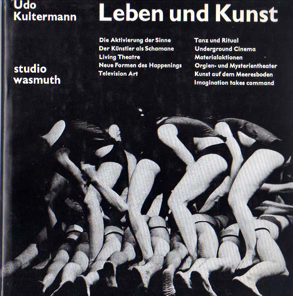 Kultermann, Udo: Leben und Kunst. Zur Funktion der Intermedia. Erste Ausgabe. Tübingen. Ernst Wasmuth Verlag. 1970. 21 x 23 cm. 210 S., 1 Faltblatt. OLeinen mit illustriertem OUmschlag. Umschlag mit Randläsuren und kleinen, hinterlegten Einrissen, insgesamt etwas angestaubt. Sonst noch gutes Exemplar. Studio Wasmuth. Standardwerk zur Neuorientierung der Kunstrichtungen nach 1960 mit Happening, Mixed Media, Living Theatre, Land Art, Konzeptkunst, Underground Cinema etc. Mit zahlreichen s/w Abbildungen.