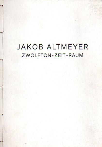 Altmeyer, Jakob: Partitur zum Zwölfton-Zeit-Raum von Jakob Altmeyer. Ausgestellt vom 26. Juni bis 31. Juli 1983. Erste Auflage. Mönchengladbach. Museum Abteiberg. 1983. 24 x 17 cm. 52 unpaginierte S., Klapptafeln. OKarton mit Blockbuchbindung. Einband angestaubt und leicht fleckig, ordentliches Exemplar. Mit einem Text von Jakob Altmeyer. Durchgehend mit SW-Abbildungen versehen.
