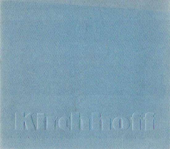 Kirchhoff: In personale. A cura di Achille Bonito Oliva. Erste Auflage. Roma. Galleria Ennio Borzi. 1991. 21 x 24 cm. 44 unpaginierte S. OKarton mit OKlappenumschlag. Gutes Exemplar. Text in Italienisch und Englisch. Durchgehend mit Abbildungen versehen, teilweise auf Klapptafeln.