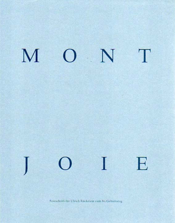 Rückriem, Ulrich: Mont Joie. Festschrift für Ulrich Rückriem zum 60. Geburtstag am 30.9.1998. Herausgegeben von Kathrin Wappenschmidt im Auftrage des Kreises Neuss. Erste Auflage. Düsseldorf. Richter-Verlag. 1998. 26 x 20 cm. 127 S. OLeinen mit OUmschlag. Rücken etwas aufgehellt. Gutes bis sehr gutes Exemplar. Mit meist farbigen Abbildungen versehen.